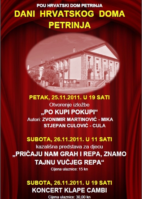 U petak i subotu, 215. i 26. studenog, u Petrinji se obilježavaju Dani hrvatskog doma Petrinja.