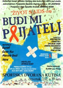 Udruga za promicanje prava i socijalizaciju djece i mladih oboljelih od HIV-a “Izazov” već petu godinu organizira koncert povodom 1. prosinca Svjetskog dana borbe protiv AIDS-a. Ove će se godine koncert pod nazivom “Budi mi prijatelj” održati u četrvtak, 01. prosinca, od 19 sati u kutisnkom Sportskom centru, a nastupaju Dalibor Prochazka, marcela Oroši, Goran Kos, Vatra i Gustafi.