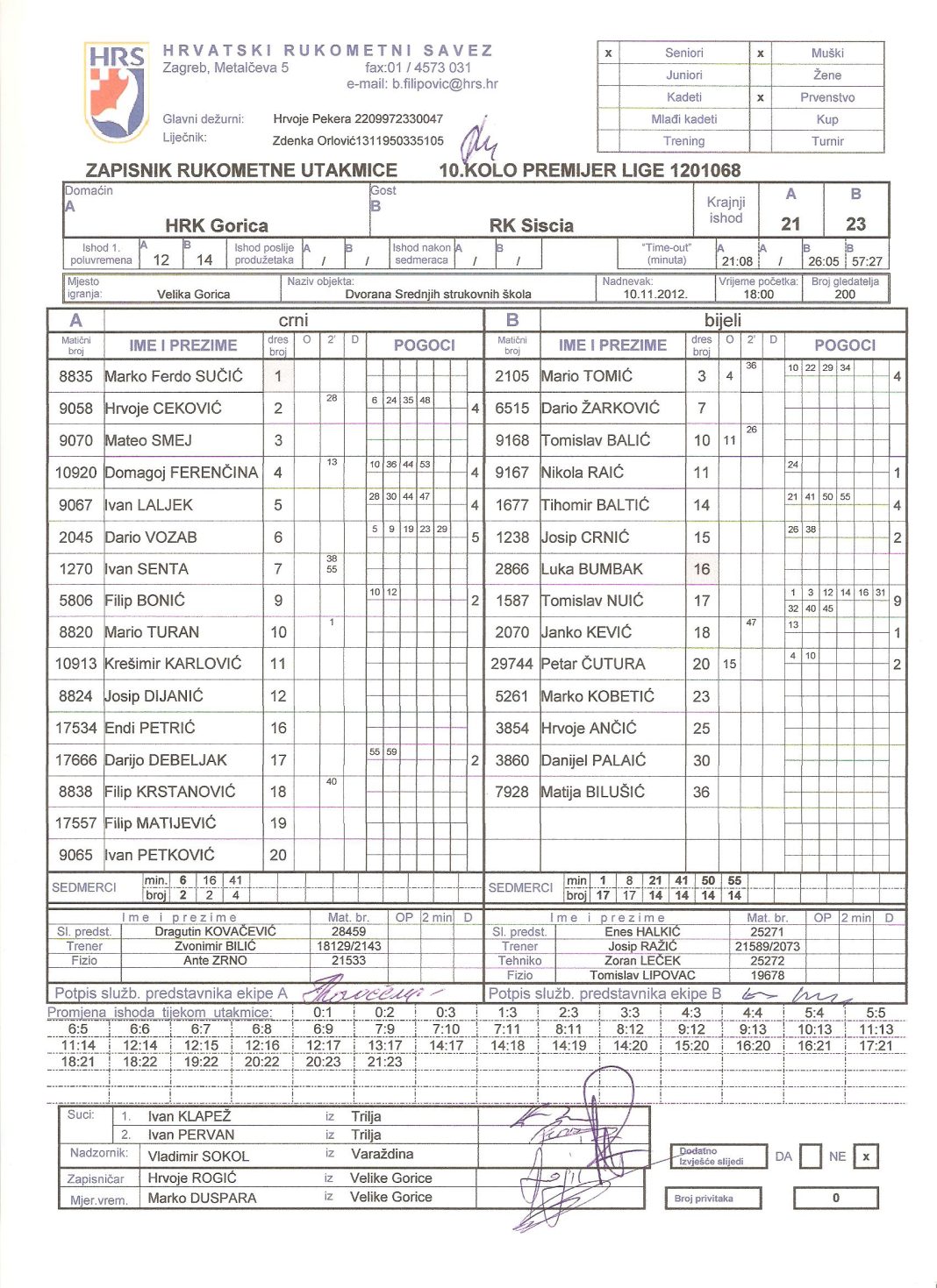 Siscia je uspješno odradila gostovanje u Velikoj Gorici. Cijelom utakmicom Siscia je dominirala, a domaći su tek povremeno smanjivali prednost gostiju na 2 gola razlike. U pobjedi sisačke momčadi 23:21 (14:12) s 9 pogodaka sudjelovao je Tomislav Nuić, četiri puta strijelci su bili Tihomih Baltić i Mario Tomić, po dva pogotka dali su Josip Crnić i Petar Čutura, a u listu strijelaca još su se upisali Janko Kević i Nikola Raič.