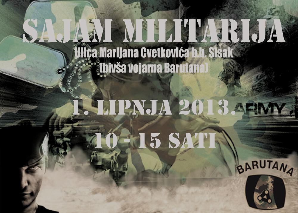 Gradski muzej Sisak na prostoru budućeg muzejskog postava Domovinskog rata „Barutana“, ulica Marijana Cvetkovića bb, u subotu, 1. lipnja 2013. organizira Treći sisački sajam militarija.