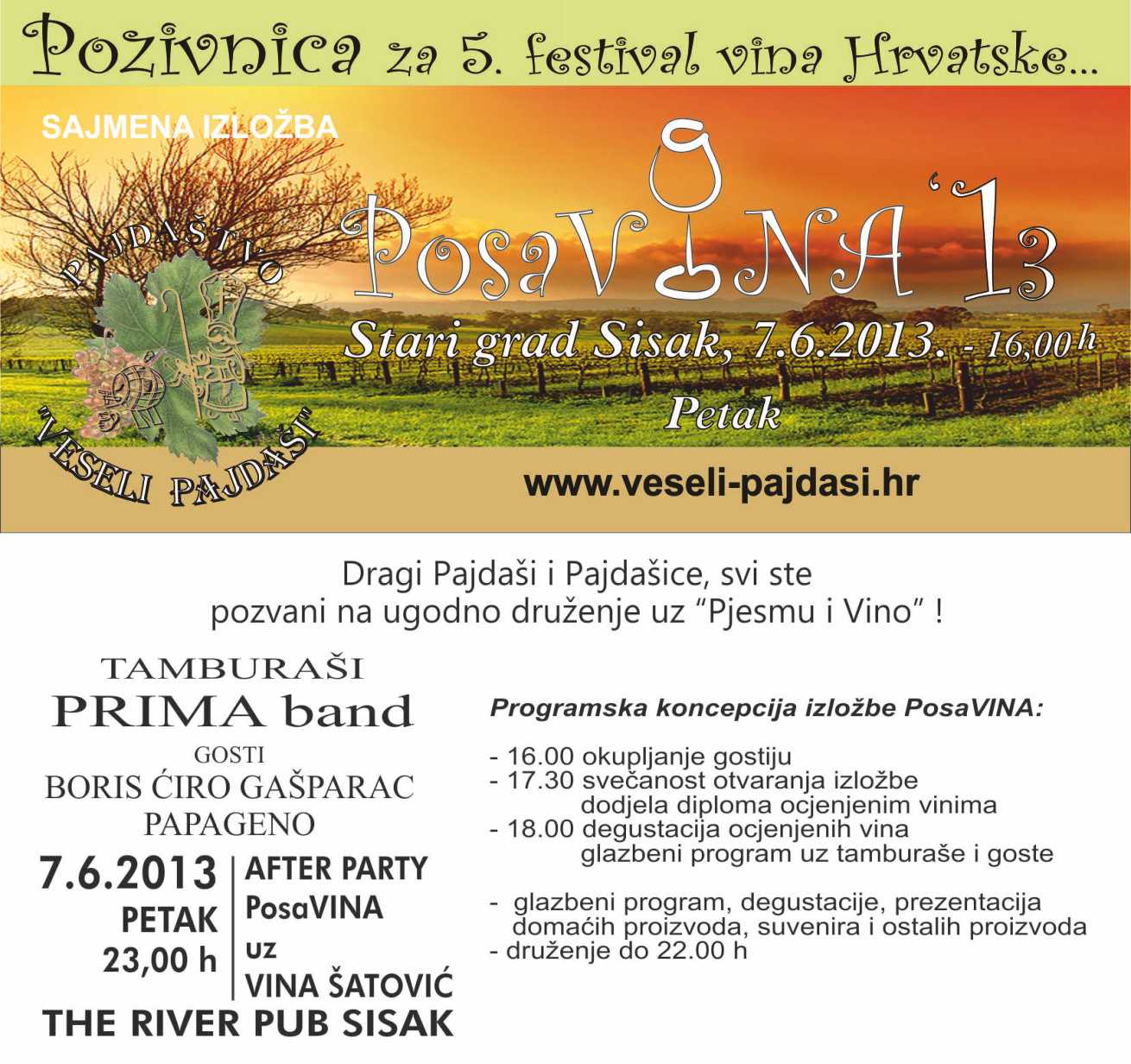 Udruga “Veseli pajdaši” organizira u petak, 07. lipnja, 5. festival vina Hrvatske PosaVINA koji će se održati u utvrdi Stari grad, s početkom u 16 sati.