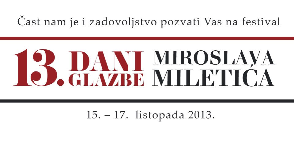 13. Dani glazbe Miroslava Miletića održat će se od 15. do 17. listopada u Sisku.