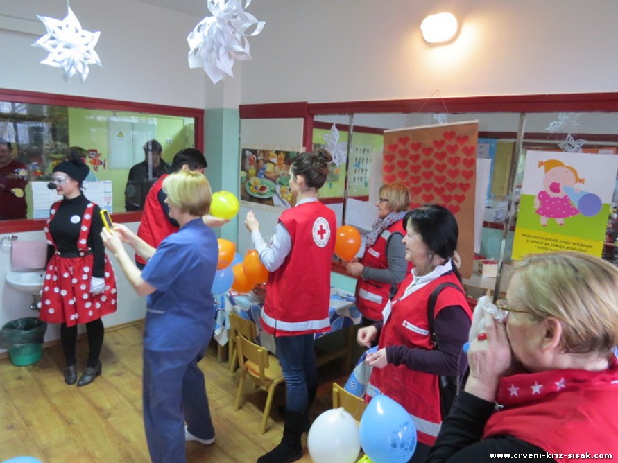Povodom obilježavanja Svjetskog dana bolesnika – 11. veljače djelatnici i volonteri Gradskog društva Crvenog križa Sisak posjetili su Odjel pedijatrije sisačke bolnice i obišli male bolesnike koji tamo leže. U posjet djeci došli su i Miki i Mini te ih razveselili pjesmom i plesom. Učenici OŠ Galdovo su posebno za djecu na odjelu pripremili čestitke i pisma u kojima su im zaželjeli brzo ozdravljenje i povratak svojim kućama.