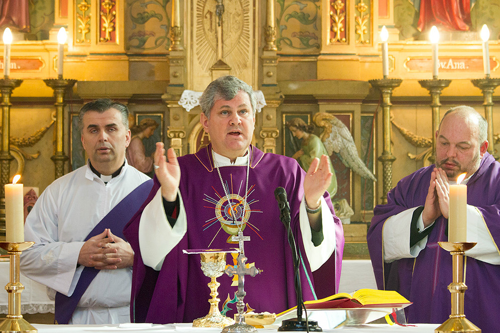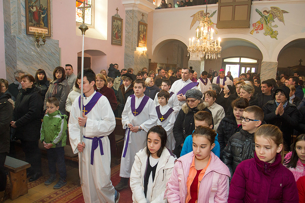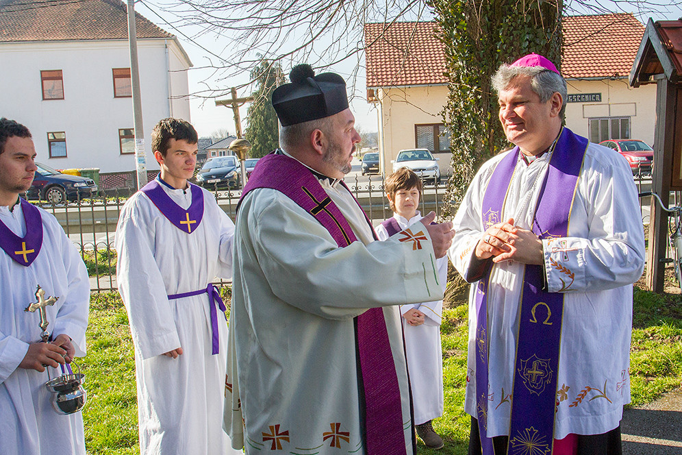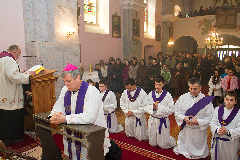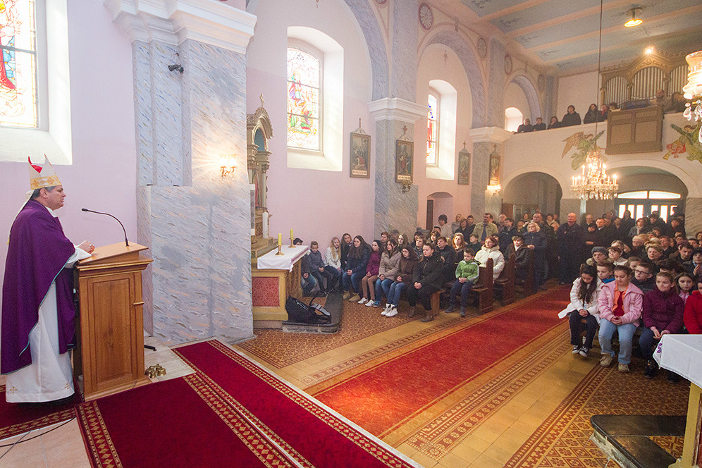 „Neki kažu da bi radije da evanđelisti nisu zapisali tu zgodu jer da nekako ne priliči Isusu da se ljuti i da tjera trgovce iz hrama. On je uvijek bio pun blagosti, pristupao je grešnicima s posebnom tankoćutnošću, bolesnike je liječio, djecu grlio. Nikoga nije osuđivao niti od sebe odbacivao, a ipak ovdje, sva četiri evanđelista zapisuju kako tjera trgovce iz hrama. Ali, Isus je znao biti i ozbiljan, istinit. Njegova riječ i geste nekada su znale poprimiti i vrlo odlučne izraze. Evo tu je dakle pred Pashu, pred ulazak u Jeruzalem i preuzimanje svoga trpljenja učinio gestu kojom je želio poručiti da je hram zapravo On sam i da smo mi živi ljudi hram Božji. Kada je Židovima rekao da će za tri dana podići hram ako ga oni razruše, a koji su oni gradili četrdeset šest godina, oni su se tome čudili i nisu shvaćali da je zapravo govorio o hramu svoga tijela jer nakon što je ubijen za tri dana je uskrsnuo. Kada se to i dogodilo učenici su povjerovali u njega i sjetili su se njegovih riječi“, rekao je biskup te dodao kako je Isus danas pokazao i jednu silovitost u tome što očekuje od nas. „On očekuje jednu hrabru odluku da u svom životu ne dopustimo da išta smeta našem odnosu prema Bogu, a to znači i našem odnosu prema čovjeku. Ako je svaki kršćanin hram Duha Svetoga onda smo mi dužni poštivati svakog čovjeka i u njemu vidjeti hram Božji“, rekao je biskup te još na kraju progovorio o Godini braka i obitelji u biskupiji te stavio okupljenima na srce da mole i podrže obitelji, a osobito one s više djece. Na kraju biskupu se na pastoralnom pohodu zahvalio vlč. Motočić. „Biskupski križ oko vrata koji se zove pektoral opominje biskupa da s tim križem nosi u svom srcu svoju biskupiju i svakoga njezinog člana, ali i da se žrtvuje za njih. U ova dva dana kada ste bili kod nas mi smo to doista mogli osjetiti. To osjećamo i u drugim vašim djelima, govorima i nastupima koje poduzimate. Zahvaljujemo Vam na tome i na ovim danima i obećavamo slušati vašu pastirsku riječ i nositi Vas u molitvama“, zaključio je vlč. Motočić.