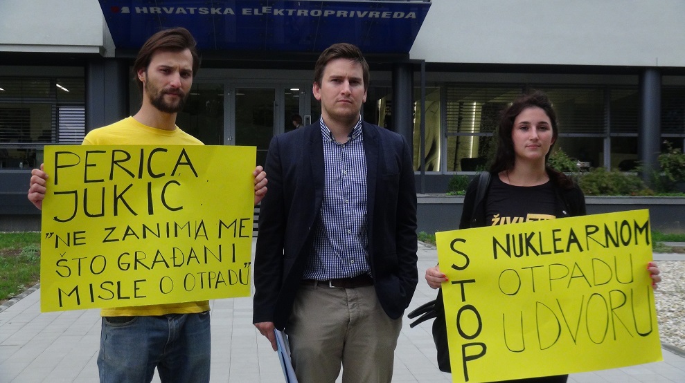 Dušan Cvetanović, član glavnog odbora Živog zida, izjavio je: “Perica Jukić, direktor uprave HEP-a je prošli tjedan na međudržavnoj konferenciji Vlada Hrvatske i Slovenije izjavio da HEP ne zanima stav stanovnika i da Hrvatska namjerava graditi odlagalište na području Općine Dvor. Pritom je kao obrazloženje naveo činjenicu da je Dvor jedna od najmanje razvijenih općine prema indeksu razvijenosti Vlade RH. Zato smo mi danas urudžbirali gospodinu Jukiću niz prijedloga kako HEP može pomoći Općini Dvor i bez uvaljivanja opasnog otpada. Predložili smo da HEP izgradi u Dvoru energanu na biomasu ili da dio donacija s brojnih sportskih klubova preusmjeri na vrtiće i škole na području Općine Dvor ili pak da konačno zamjeni dotrajalu niskonaponsku mrežu i vrati struju onim kućanstvima koji je nemaju posljednjih 20 godina. Isto tako, predložili smo gospodinu Jukiću, ukoliko on zaista smatra da je nuklearni otpad blagoslov za siromašne općine, da ne pomaže samo Općini Dvor, nego da otpad, kojeg ima 10 000 tona, preusmjeri na sve siromašne općine u Hrvatskoj, kako bi svaka od njih imala koristi od skladištenja istog. U tu svrhu smo gospodi iz HEP-a dostavili odluku Vlade o indeksu razvijesnosti svake općine u RH iz koje će s lakoćom isčitati kome je sve potrebna pomoć. Ovako, dok god se gdin Jukić zalaže samo za Općinu Dvor ostavlja se prostor za sumnju u sukob interesa i zlouporabu položaja i ovlasti budući je i on rodom iz Dvora, a tamo je i živio i odrastao.” – rekao je Cvetanović.