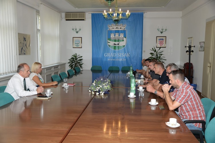Gradonačelnica Kristina Ikić Baniček i zamjenik gradonačelnice Vlado Andučić sastali su se danas u Gradskoj vijećnici s članovima Stožera za obranu i očuvanje radnih mjesta Rafinerije nafte Sisak.