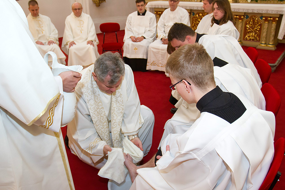 Nakon propovijedi, a prema drevnoj tradiciji liturgije svetog Trodnevlja, biskup Košić oprao je noge dvanaestorici muškaraca, svećenicima, bogoslovima i laicima.
