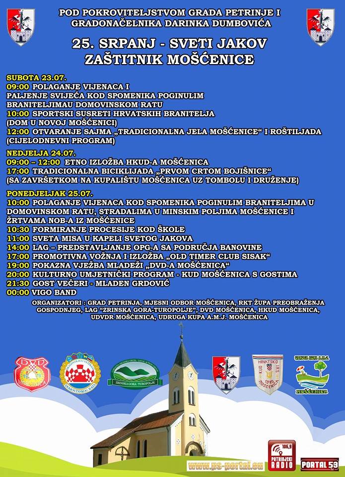 – 12.00 sati otvorenje sajma „Tradicionalna jela Mošćenice“ uz cjelodnevni program na kupalištu u Mošćenici, uz degustacije delicija i besplatno piće.