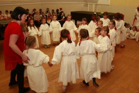 Izveli su niz tradicijskih pjesama s područja Posavine, Pokuplja, Turopolja te čeških dječjih tradicijskih plesova koje su marljivo pripremali tijekom godine. Njihov trud nagrađen je velikim pljeskom. Na izvrsnom nastupu djeci i odgajateljicama Ivanki Idžaković, Tihani Barać, Meliti Vujasić, Ani Mariji Ovas i Martini Sambol čestitala je ravnateljica Ljubica Ivšić.
