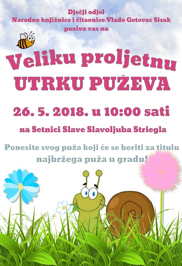 I ove vas godine iz NKČ Sisak, koja je organizator utrke, pozivaju u što većemu broju na utrku puževa koja će i ove godine biti na otvorenome – na sisačkoj Šetnici.