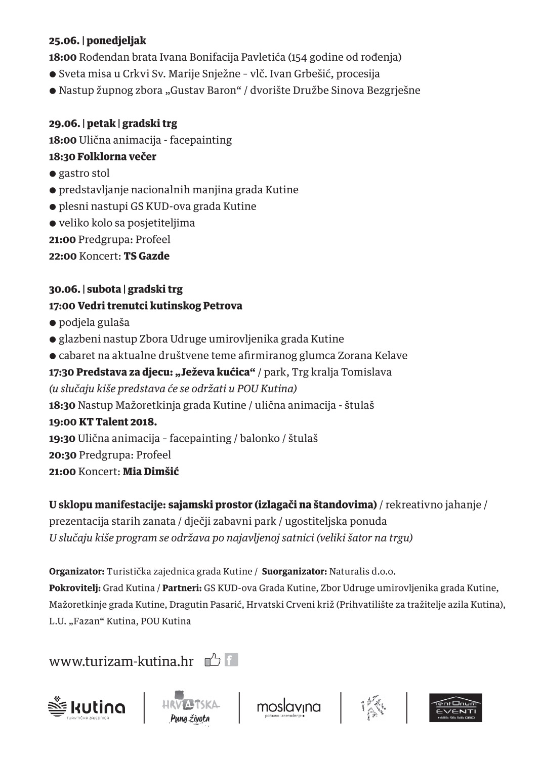 Dakle, tradicionalna manifestacija Petrovo – slavlje kutinsko u organizaciji Turističke zajednice grada Kutine održat će se samo u subotu, 30. lipnja.