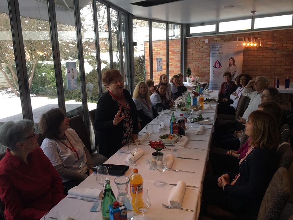 U ime partnera projekta na susretu su svoja iskustva vezana za provedbu ovog projekta iznijele Željka Vagner Petrić iz Hrvatskog zavoda za zapošljavanje Područni ured Sisak i ravnateljica Centra za socijalnu skrb Sisak Alenka Ljubešić.