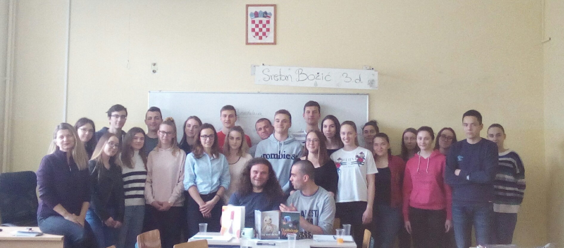 Odazvali su se ovom hvalevrijednom projektu na poziv profesorice Vesne Rogulje Mart kako bi učenicima iz prve ruke približili suvremenu hrvatsku književnu produkciju. Druženje je organizirano s učenicima 3. d razreda.