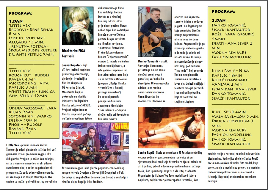 FIGA festival-filmski festival pod zvijezdama  je zamišljen kao filmski festival koji pomaže program kulturne revitalizacije Siska. održat će se u petak i subotu, 20. i 21. rujna u Siscia jazz klubu s početkom u 20 sati.