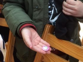 Na kraju susreta svim sudionicima podijeljeni su bedževi prijateljstva koji se mogu nositi na odjevnom predmetu, pernici ili torbi. Suradnja Knjižnice Caprag, GIMG Sisak i Osnovne škole Braća Bobetko razvijat će se i dalje.