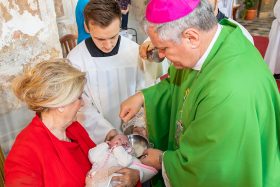 Sisački biskup Vlado Košić predvodio je u nedjelju, 14. lipnja u župnoj crkvi sv. Mihaela ark. u Velikoj Ludini, misno slavlje tijekom kojeg je krstio Luciju, deseto dijete u obitelji Zorice i Tomislava Horvat. U koncelebraciji bio je domaći župnik vlč. Mato Sukalić koji je na početku pozdravio biskupa i sve okupljene te čestitao obitelji na ovom radosnom događaju za ovu župnu zajednicu.