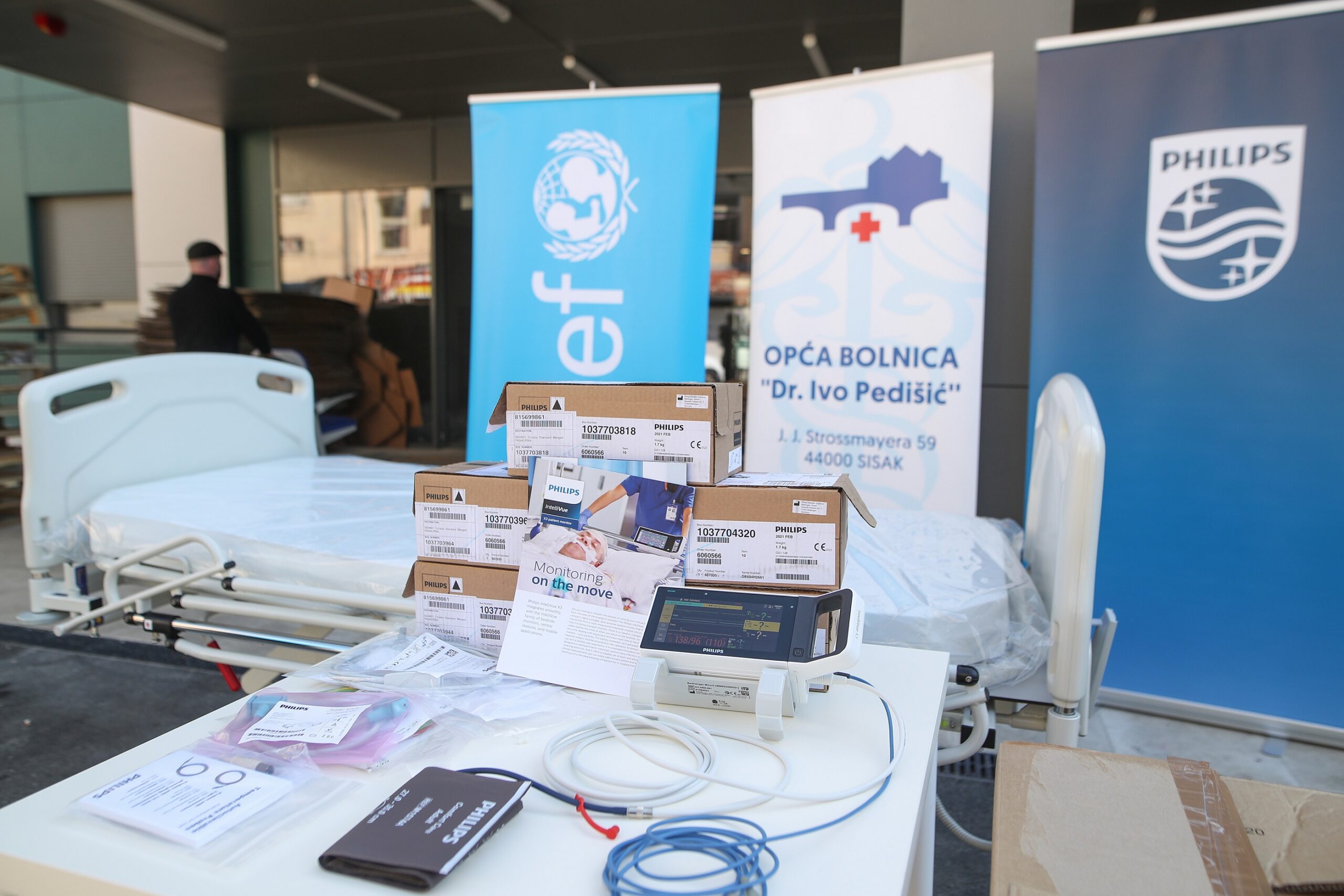 Kako bi podržala UNICEF-ove napore u pružanju pomoći zdravstvenim ustanovama u Sisačko-moslavačkoj županiji koje su pogođene pandemijom bolesti COVID-19, ali i razornim potresima koji su se dogodili krajem prošle godine, tvrtka Philips Hrvatska jeu partnerstvu s tvrtkom Iceberg International Trading donirala UNICEF-u ukupno šest prijenosnih monitora za praćenje vitalnih funkcija pacijenata. UNICEF će monitore donirati Općoj bolnici “dr. Ivo Pedišić” u Sisku i Domu zdravlja u Petrinji. Prijenosni monitori za praćenje vitalnih funkcija omogućuju neprekidno praćenje stanja pacijenata, bilo da se nalaze u krevetu ili u transportu, a opremljeni su i cijelim nizom podesivih kliničkih vrijednosti.
