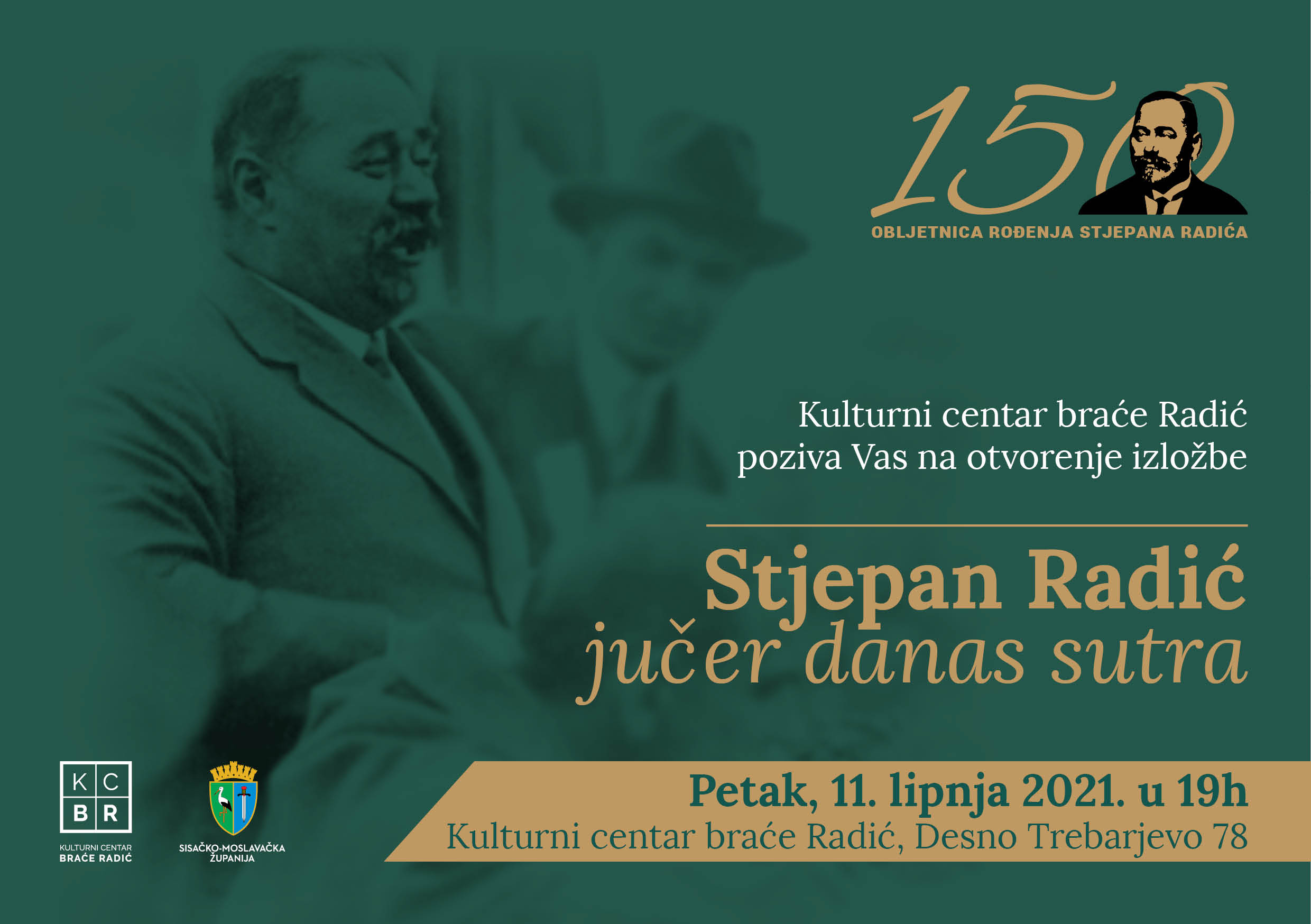 Kulturni centar braće Radić poziva Vas na otvorenje izložbe “Stjepan Radić – jučer, danas, sutra” autora Ivice Valenta, koja je postavljena u povodu obilježavanja 150. godišnjice rođenja hrvatskog velikana Stjepana Radića. Izložba se otvara u petak, 11. lipnja s početkom u 19 sati u Kulturnom centru braće Radić u Desnom Trebarjevu.