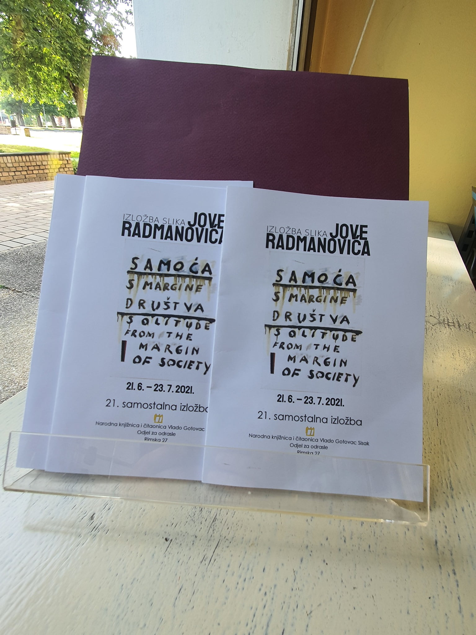 U Odjelu za odrasle sisačke knjižnice očekuje vas 21. samostalna izložba Jove Radmanovića “Samoća s margine društva” koju možete pogledati do 23. srpnja 2021. godine.