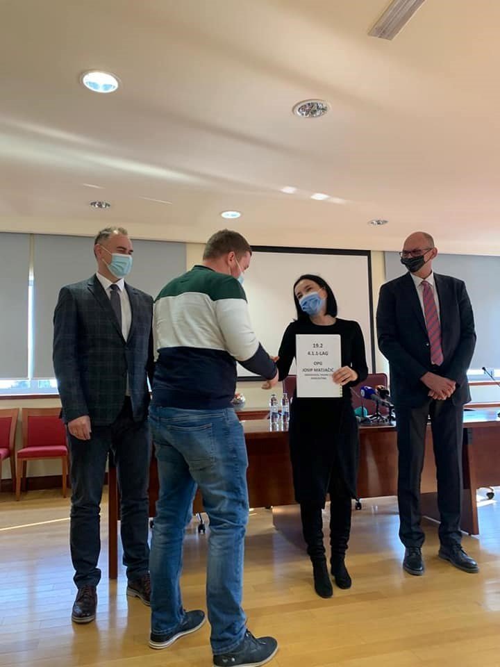 Ministrica poljoprivrede Marija Vučković je u utorak, 7. prosinca 2021. godine, u Sisku sa zamjenikom ravnatelja Agencije za plaćanja u poljoprivredi, ribarstvu i ruralnom razvoju Zdravkom Planincem i ravnateljem Uprave za stočarstvo i kvalitetu hrane Zdravkom Baraćem, u nazočnosti zamjenika župana sisačko-moslavačkog Mihaela Jurića, uručila nove ugovore iz Programa ruralnog razvoja, pri čemu je u Sisačko-moslavačku županiju upućeno ukupno 2,8 milijuna kuna potpore kojom će se realizirati ulaganja vrijedna 3,6 milijuna kuna.