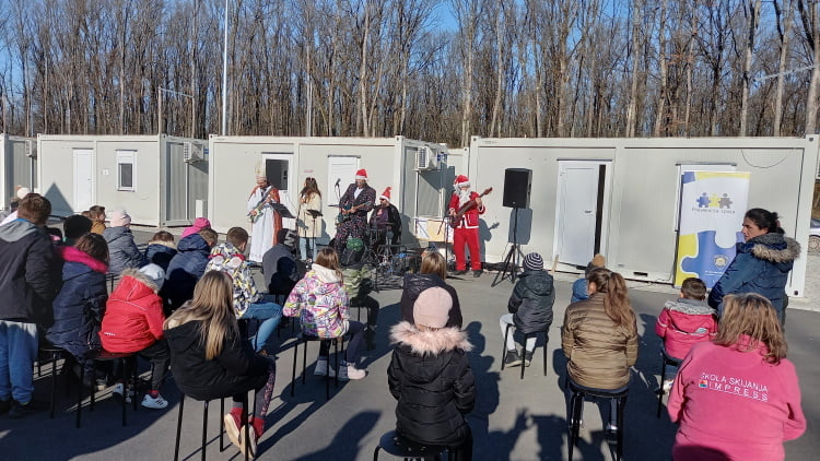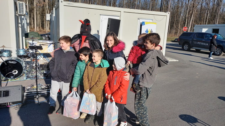 U nastavku glazbeno-dramskog programa pod motom „Budi čovjek“, grupa ADASTRA i policijski službenici su uz prigodne glazbene note zabavljali djecu, roditelje i sve prisutne korisnike privremeno smještene u kontejnerskom naselju. Na kraju programa u organizaciji Vijeća za prevenciju kriminaliteta Grada Petrinje na čelu s gradonačelnicom Grada Petrinje Magdalenom Komes, podijeljeni su prigodni pokloni za oko 60 djece.