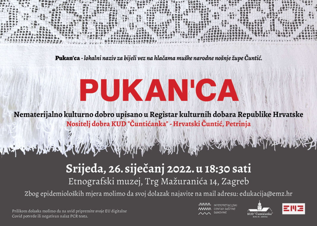 Promociju Pukan’ce, nematerijalnog kulturnog dobra upisanog u Registar kulturnih dobara Republike Hrvatske,  će se održati u srijedu 26. siječnja 2021. u 18:30 sati u Etnografskom muzeju u Zagrebu, Trg mažuranića 14.
