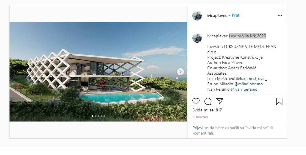 Večernji detaljizira kako tvrtka posjeduje parcelu na otoku Krku, riječ je o naselju Salatić, a na Facebooku i internetskoj stranici Luxury Villas predstavljen je projekt gradnje luksuzne vile.