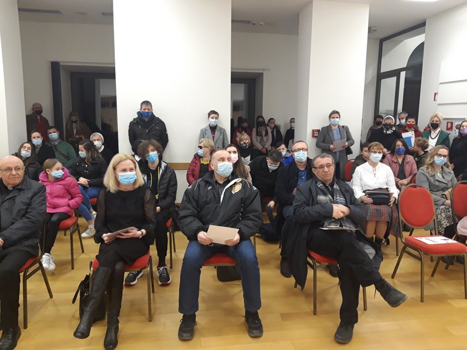 “Zadovoljstvo mi je večeras biti ovdje i hvala Vam što ste nas pozvali na ovu izložbu, rekla je uvodno pozdravivši, u ime župana i svoje osobno ime, sve nazočne, privremena pročelnica za obrazovanje kulturu, šport mlade i civilno društvo Sonja Čatić. Sisačko-moslavačka županija podržava sve kvalitetne i dobro osmišljene projekte, podržala je i projekte Udruge „Radost“ i činit će to i ubuduće. Naš Upravni odjel je onaj kojem je i zadaća podržavati ovakve i slične projekte, kreativne, stvaralačke. Učenici i njihovi mentori i ove su godine potvrdili kako kontinuirani rad učitelja, posebno s djecom i mladima, podrška roditelja i obitelji, daju u konačnici rezultat , večeras , evo ovdje u Sisačkoj biskupiji i svima vidljiv. Čestitam svima , nastavite vrijedno raditi, a Sisačko-moslavačka županija i dalje će Vas pratiti u Vašim aktivnostima”, zaključila je Čatić.