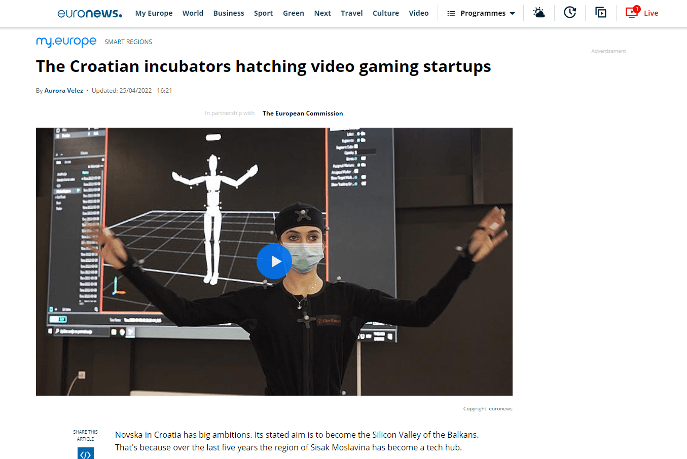 Ovih dana europski mediji pohvalili su razvoj Poduzetničkog inkubatora Sisačko-moslavačke županije – PISMO powered by A1. Euronews televizija dostupna u kućanstvima diljem svijeta objavila je prilog o uspjesima koje niže jedinstveni hrvatski inkubator namijenjen industriji videoigara. Prilog je objavljen u serijalu Smart regions i emitira se cijeli tjedan.