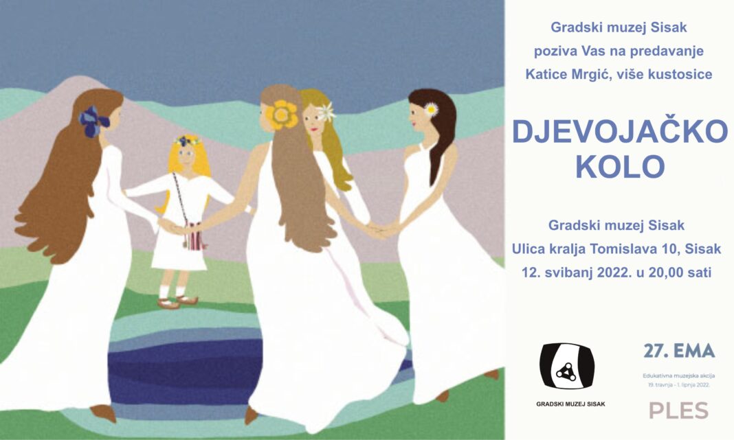 U sklopu izložbenog projekta “Dragi dragu preko kola gleda, draga moja slađa si od meda” i 27. Edukativne muzejske akcije EMA u četvrtak, 12. svibnja, u Gradskom muzeju Sisak održat će se predavanje pod nazivom “Djevojačko kolo”.