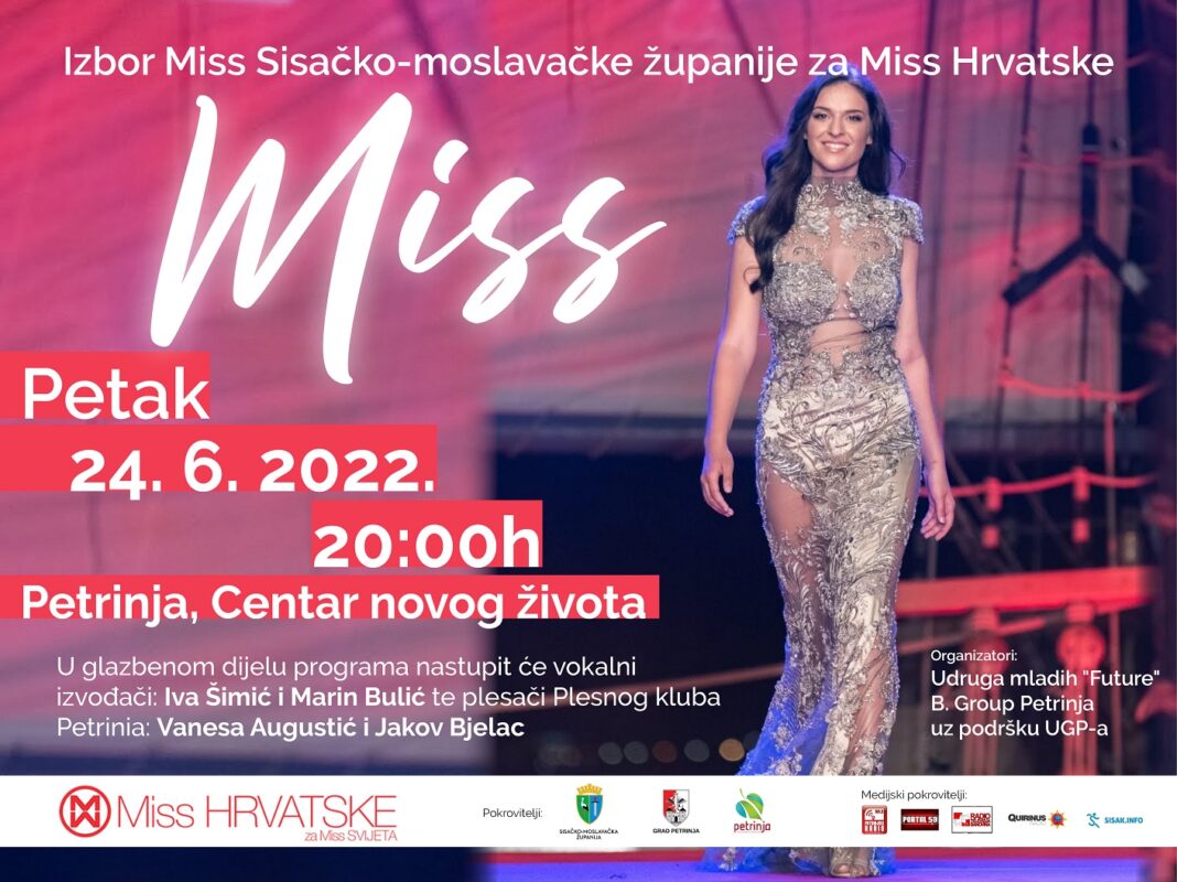 Posljednja Miss Sisačko-moslavačke županije izabrana 2019. godine bila je Helena Ćatić iz Hrvatske Kostajnice koja će, nakon tri godine, svoju krunu predati najljepšoj djevojci naše županije koja će biti izabrana u petak, 24. lipnja 2022. godine u Petrinji u Centru novog života na Sajmištu od 20 sati.
