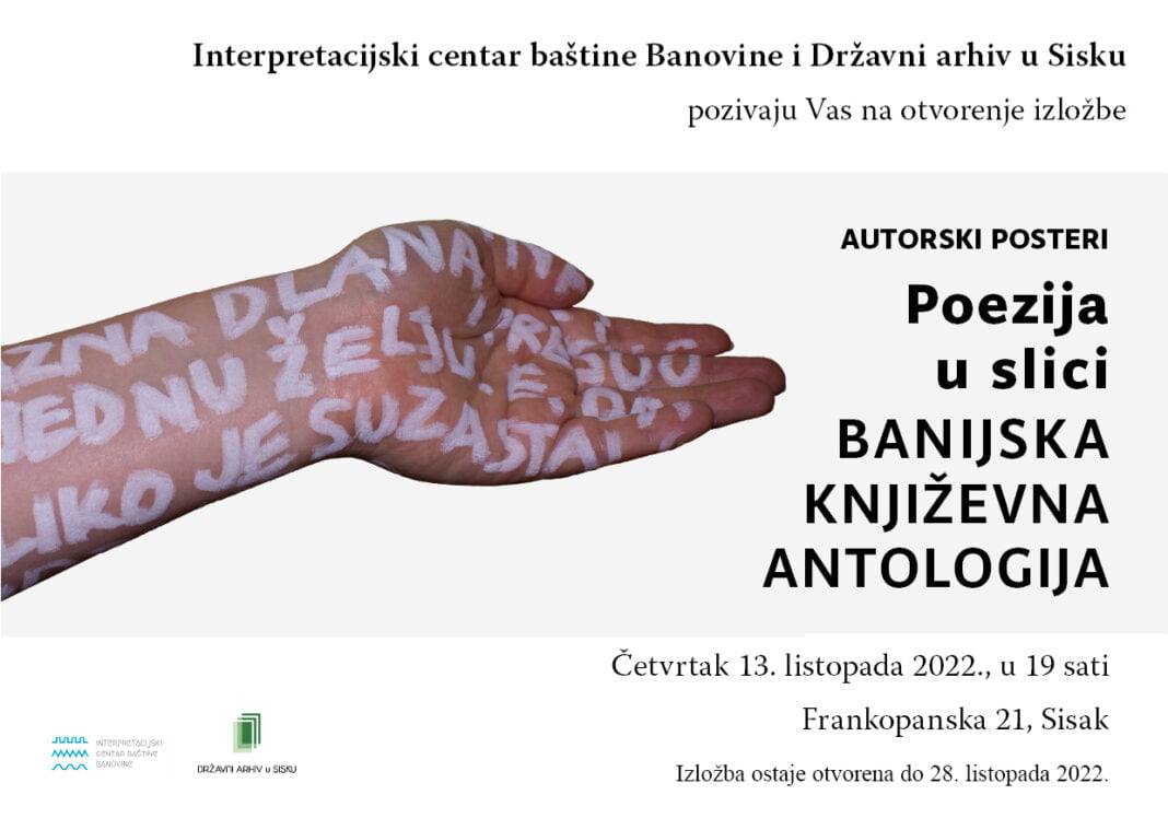 Otvorenje izložbe studenata Nastavničkog odjela Akademije likovnih umjetnosti u Zagrebu „Poezija u slici“ te razgovor s dr. Borisom Vrgom o knjizi Banijska književna antologija u četvrtak, 13. listopada s početkom u 19 sati u Državnom arhivu u Sisku, Frankopanska ul. 21.