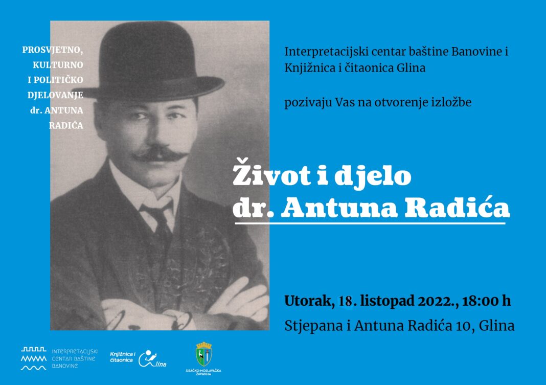 Otvorenje izložbe “Život i djelo dr. Antuna Radića” autora dr.sc. Domagoja Sremića u Knjižnici i čitaonici Glina u utorak, 18. listopada s početkom u 18 sati.