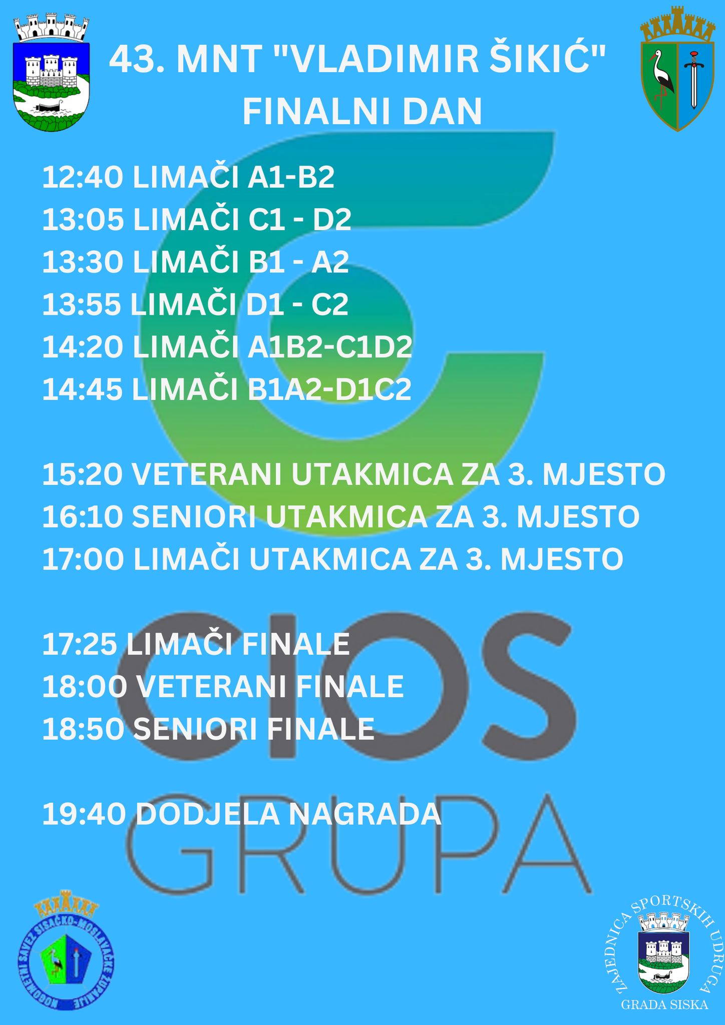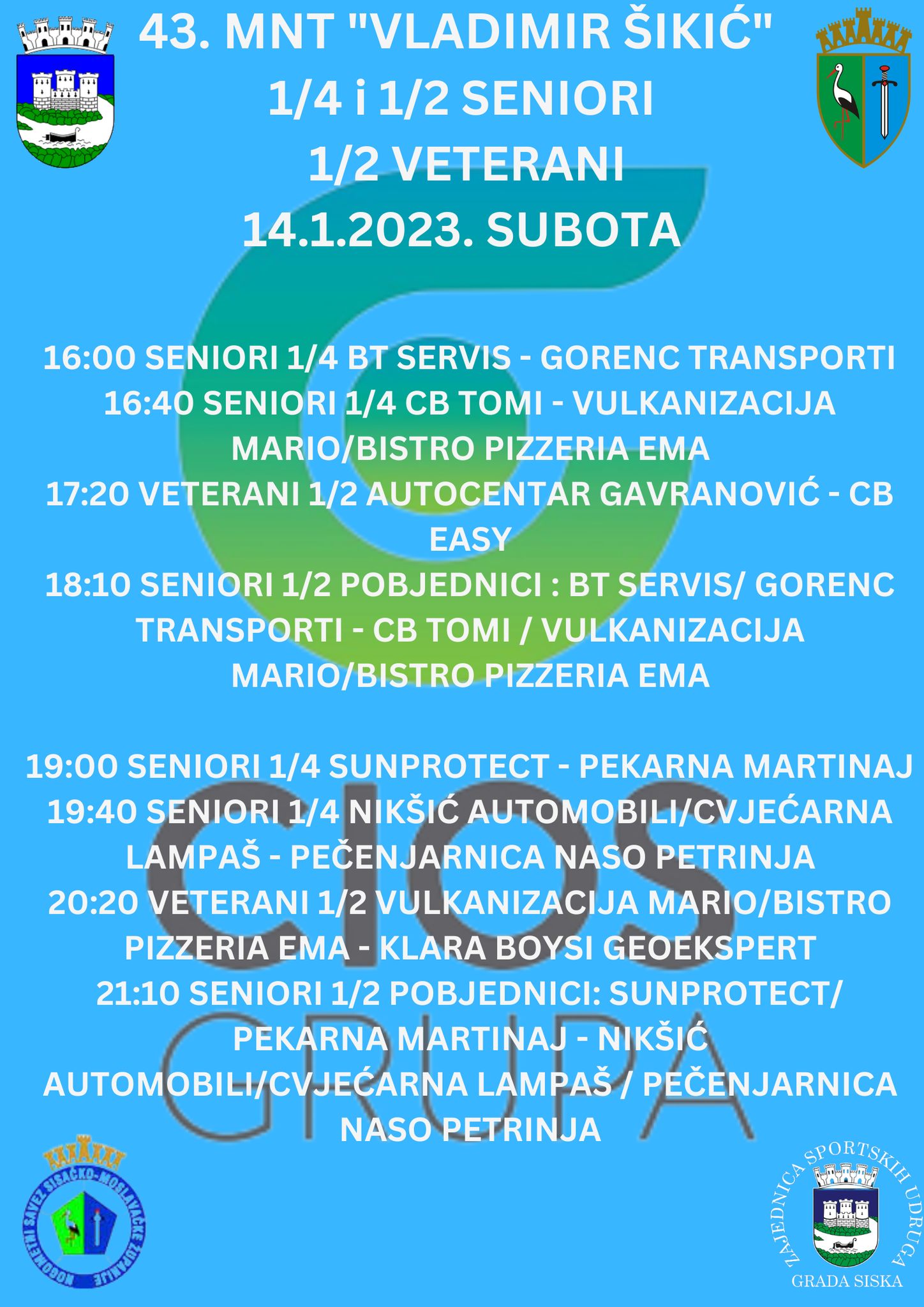 U subotu, 14. siječnja, odigravaju se četvrtfinalne i polufinalne utakmice seniora te polufinale veterana, a za nedjelju, 15. siječnja, rezervirane su finalne utakmice veterana i seniora te završnica turnira za limače.