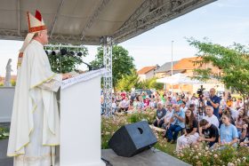 Misno slavlje, kao krunu prvog dana Mladifesta, predvodio je sisački biskup Vlado Košić. U svojoj je propovijedi biskup rekao kako je naš Bog, Bog čudesa o čemu svjedoči i prvo čitanje iz Knjige postanka kada je Bog Abrahamu koji je imao 99 godina i ženi mu Sari od 90 godina obećao potomstvo. „Doista Sara je rodila sina Izaka, od Izaka se rodio Jakov, a njemu dvanaest sinova po kojima nose imena dvanaest izraelskih plemena. Tako je nastao taj prvi Božji starozavjetni narod. Tu je Bog želio pokazati svoju čudesnu desnicu, da je njemu sve moguće samo mu treba vjerovati. Kaže Poslanicama Hebrejima da kada je Bog navijestioAbrahamu da će od njega poteći veliki narod, povjerova Abraham i uračuna mu se u pravednost. Kada vjeruješ i protiv svake nade se nadaš to je prava vjera i pravo povjerenje. Kada ne vidiš što slijedi iza svakog tvog koraka, a ti se, kako kaže prof. Ivančić, usuđuješ baciti u naručje i Očeve te ruke uhvate i ti si spašen. Zato jedino što trebamo naučiti danas iz Riječi Božje je da trebamo imati povjerenje u Boga i da Bog čini čudesa i kada je to nemoguće“, poručio je biskup.