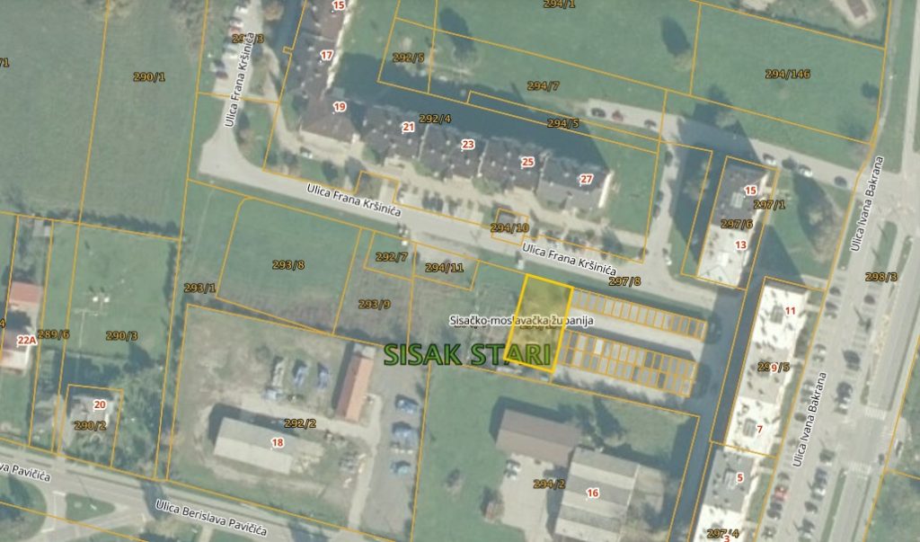 -dio zk.č.br. 293/9, površine 619 m2, upisane u zk.ul.br. 4320, k.o. Sisak Stari, dio zk.č.br. 292/7, Svibovica, livada, površine 198 m2, upisane u zk.ul.br. 2933, k.o. Sisak Stari, dio zk.č.br. 294/11, Svibovica, livada, površine 217 m2, upisane u zk.ul.br. 2934, k.o. Sisak Stari, dio zk.č.br. 294/4, Svibovica, oranica, površine 1.105 m2, upisane u zk.ul.br. 4717, k.o. Sisak Stari, sve upisane u Zemljišnoknjižni odjel Sisak Općinskog suda u Sisku, u vlasništvu Grada Siska, koji nije planiran kao površina infrastrukturnih sustava (prometnih površina) prema Detaljnom planu uređenja „Zgmajne centar“ u Sisku („Službeni glasnik“ Sisačko-moslavačke županije br. 5/05. i 9/13).