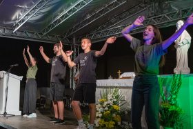 Misno slavlje predvodio je šibenski biskup Tomislav Rogić u zajedništvu s povjerenikom za pastoral mladih sisačke biskupije Marianom Štinglom i rektorom bazilike Robertom Jakicom.