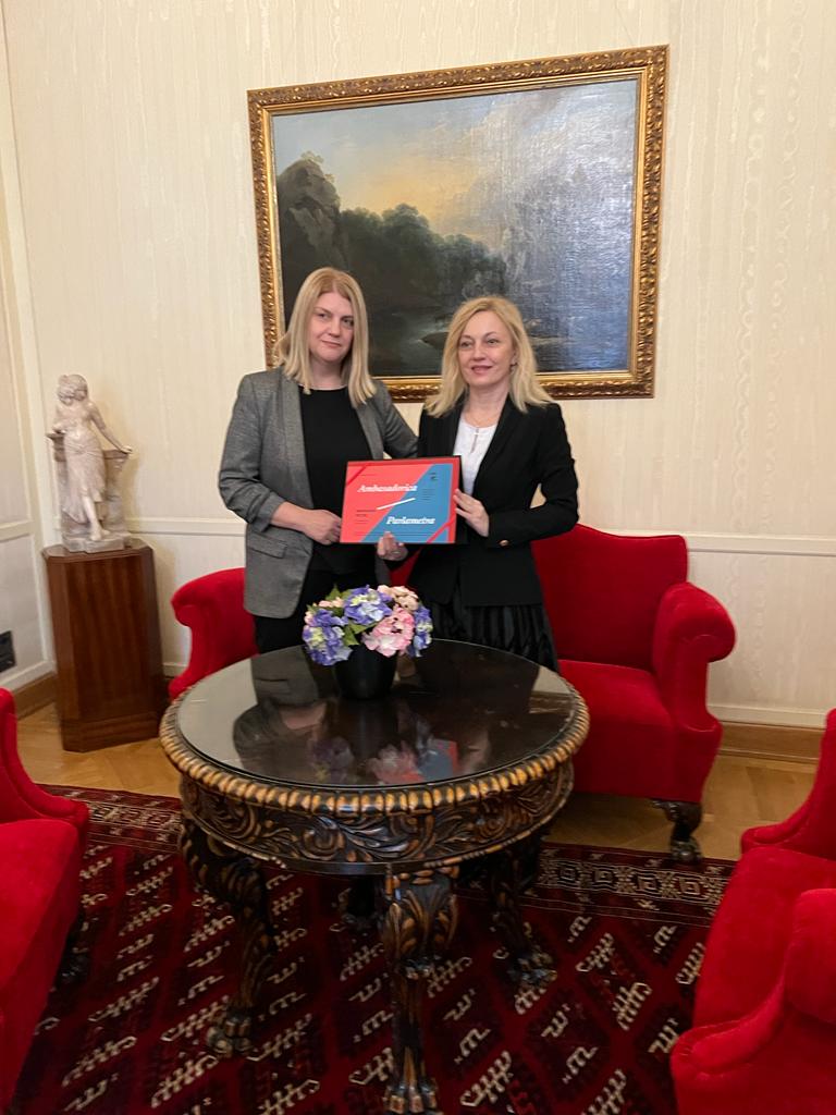 Predsjednica Odbora za poljoprivredu Hrvatskog sabora, Marijana Petir susrela se je u Hrvatskom saboru s Orianom Ivković Novokmet, izvršnom direktoricom GONG-a i Sergejom Županićem, projektnim koordinatorom GONG-a, kojom prilikom su joj predstavnici GONG-a uručili plaketu Ambasadorice Parlametra.