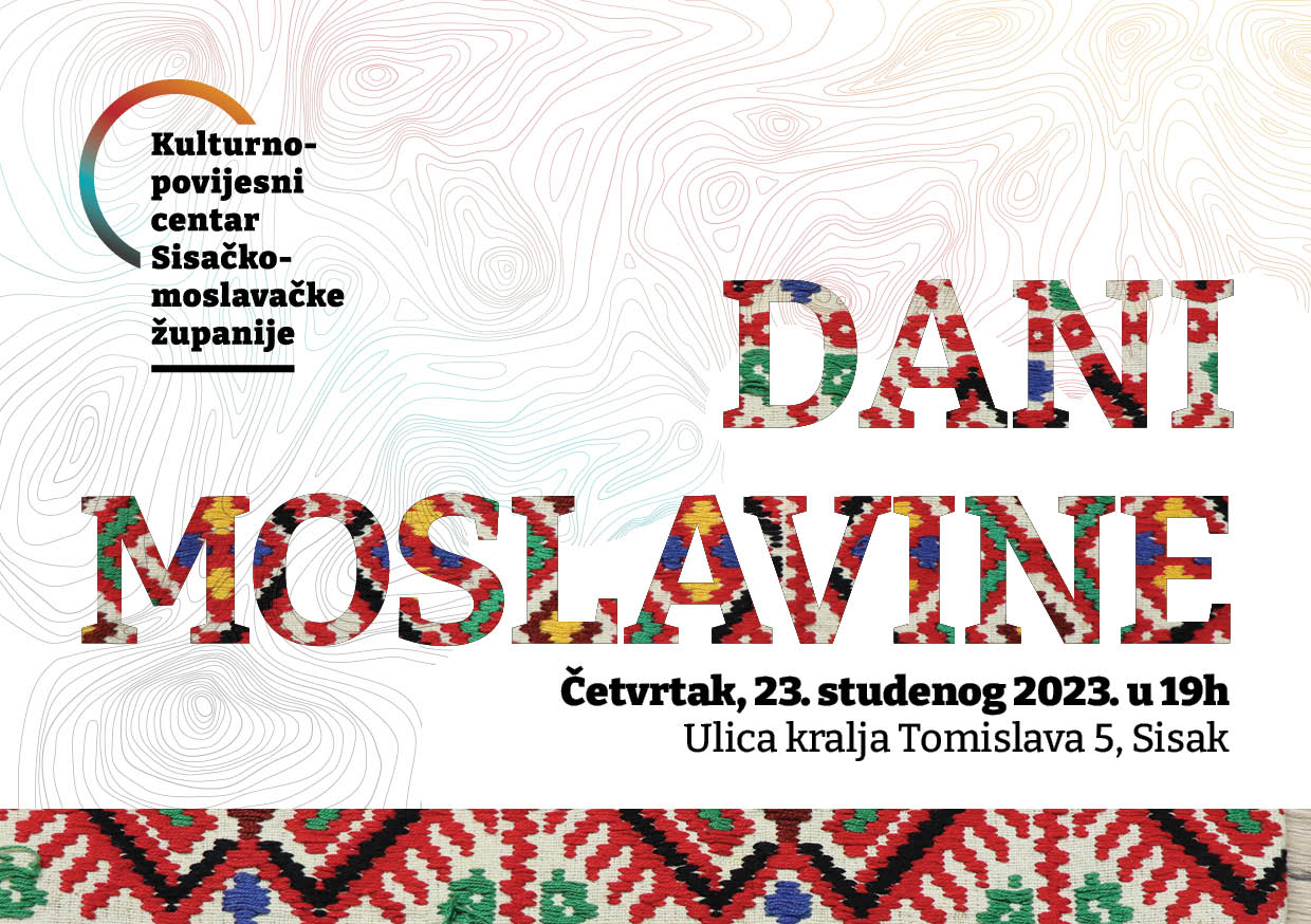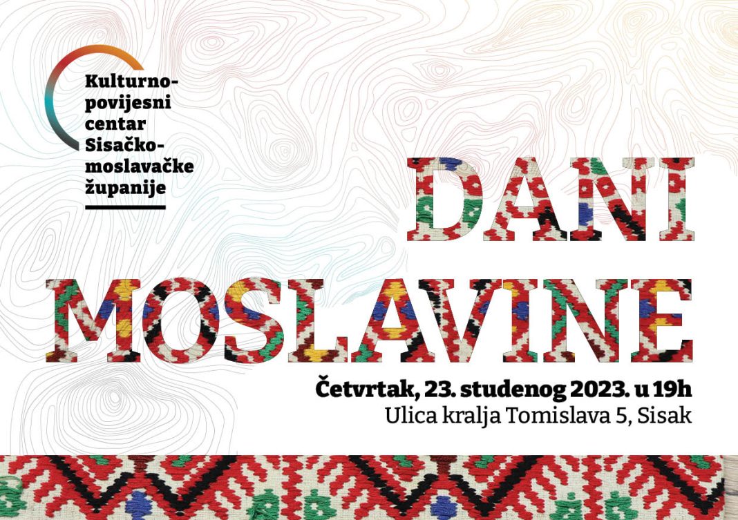 Kulturno-povijesni centar Sisačko-moslavačke županije organizira DANE MOSLAVINE koji će se održati u četvrtak, 23. studenog 2023. godine s početkom u 19 sati u Sisku, Ulica kralja Tomislava 5.