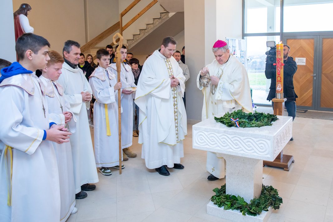 Poručio je i kako krštenjem započinjemo život Isusovih učenika, ali i kako na tom putu treba napredovati do samog stola Gospodnjeg te biti dionik euharistije. „Zato je dobro da se i simbolički ova nova krstionica postavila na ulaz u crkvu. Od tog ulaza treba doći do oltara i postati punopravni član Crkve po Svetoj potvrdi i po Svetoj euharistiji. Upravo je euharistija vrhunac i tko može sudjelovati na misi s pričešću on je u punini tijela Kristova tj. Crkve“, rekao je biskup dodavši kako smo mi krštenjem ucijepljeni u Presveto Trojstvo.