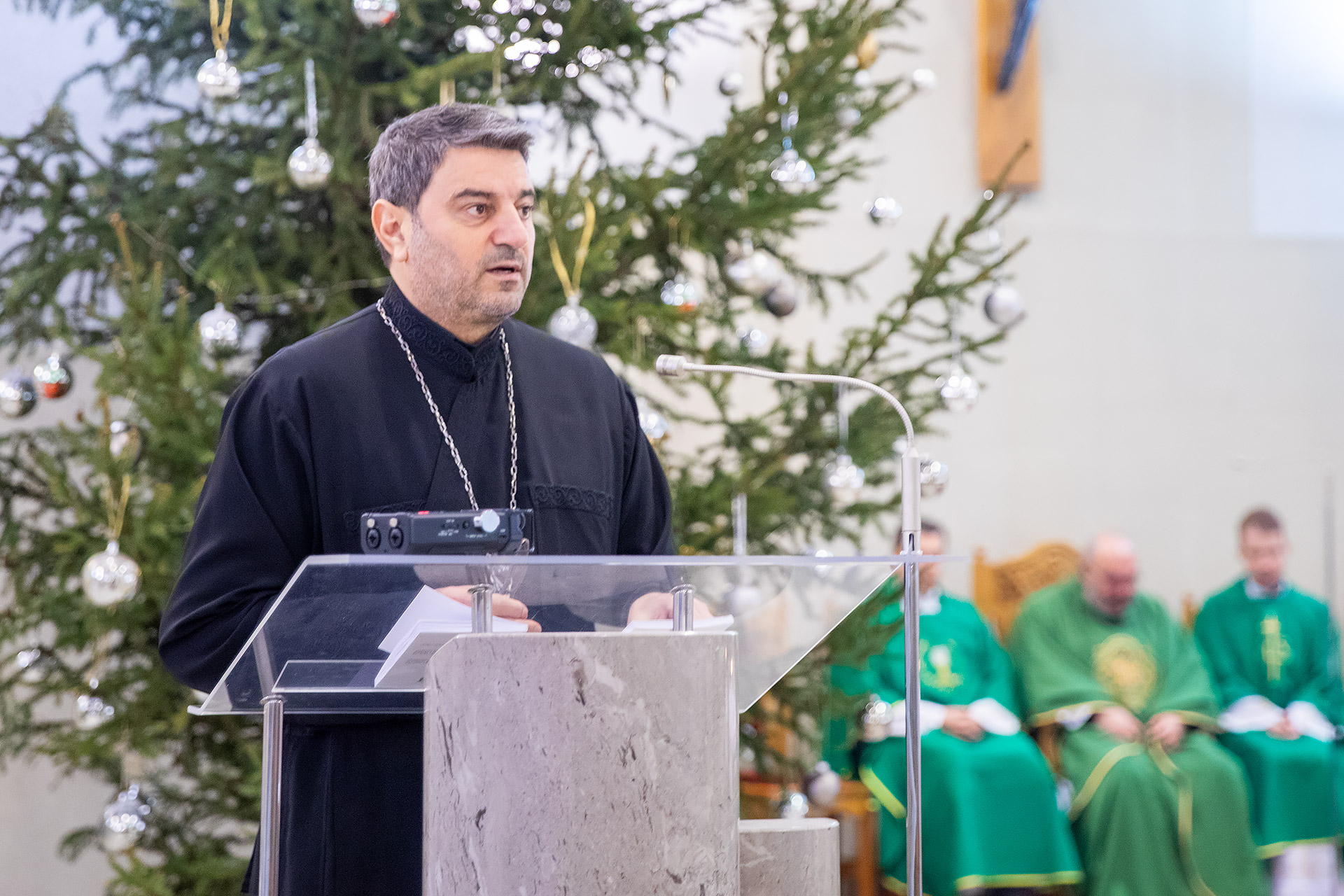 Na kraju mise, okupljene je pozdravio i o. Kirko prenijevši pozdrave europskog metropolitePimena. „Danas sam ovdje došao kako bi zajednički s vama otvorena srca i s velikom ljubavlju molio na istu nakanu, jedinstvo svih nas Isusovih učenika. Dvanaestorica apostola proširila su Radosnu svijest čitavom zemaljskom kuglom, a tako danas molitvom možemo učiniti puno jer Bog je ljubav i njemu je sve moguće“.