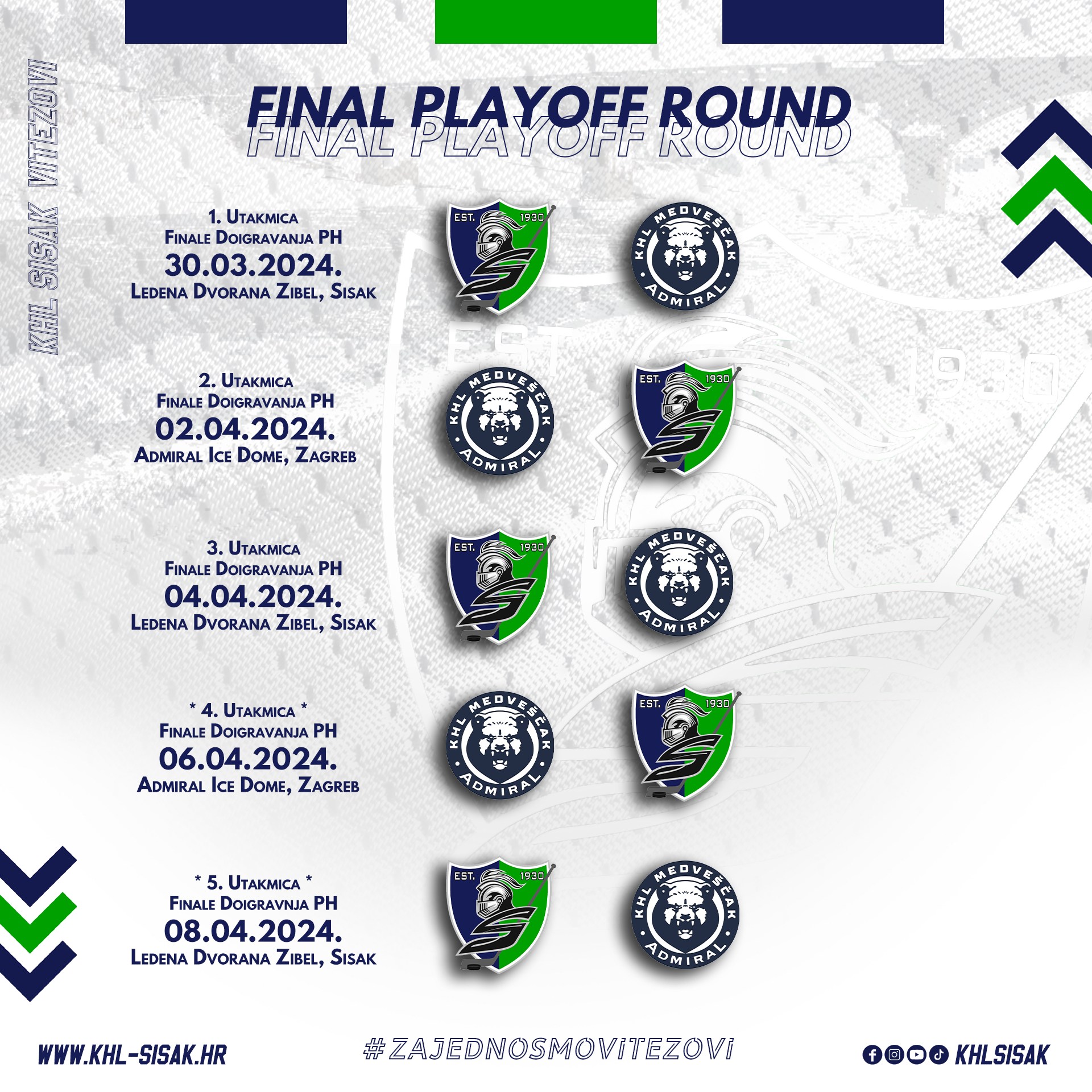 KHL Sisak je u finalu treću sezonu zaredom, a ovog puta igraju protiv KHL Medveščak Admirala. Prva utakmica finalne serije igra se već ove subotu 30. ožujka na domaćem ledu Ledene dvorane Zibel od 18:30.