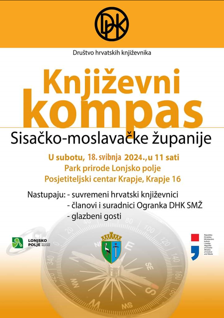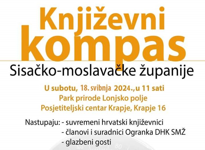 Sljedeća tribina ”Književnog kompasa Sisačko-moslavačke županije” Društva hrvatskih književnika održat će se u Krapju, u suradnji s Parkom prirode Lonjsko polje na adresi Posjetiteljski centar Krapje (Krapje 16), u subotu 18. svibnja 2024. godine s početkom u 11 sati.