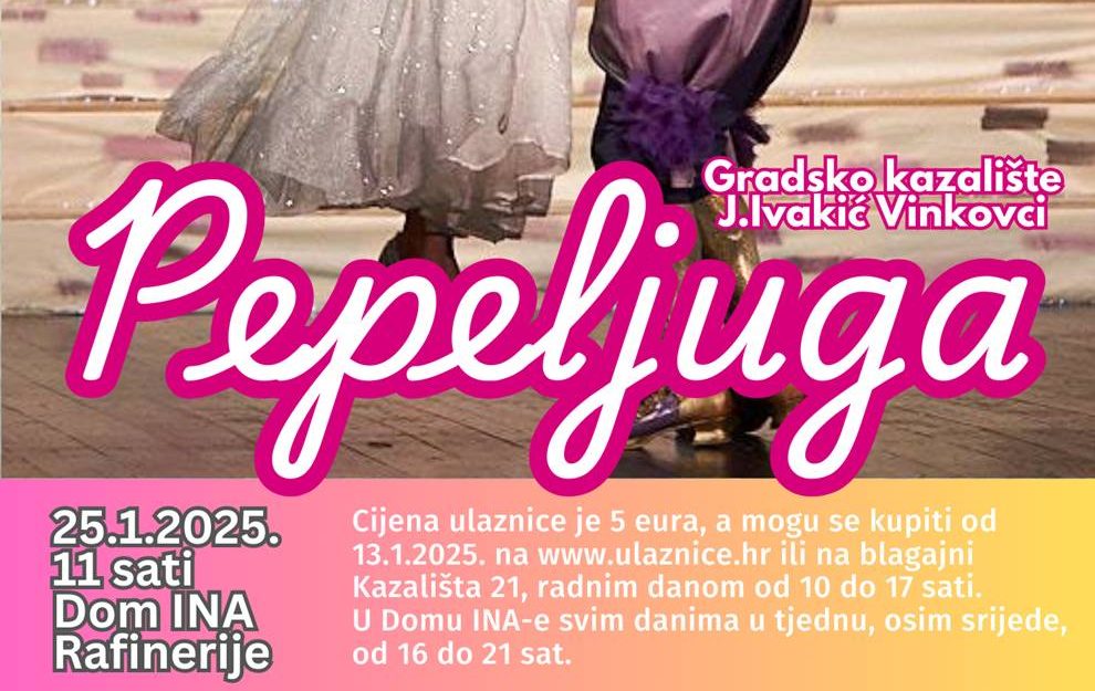 Gradsko kazalište Joza Ivakić Vinkovci i Dječje kazalište Branka Mihaljevića u Osijeku donose raskošan mjuzikl inspiriran bajkom Charlesa Perraulta. Priča o skromnoj i nesebičnoj Pepeljugi podsjeća nas da dobrota uvijek pobjeđuje, a sjajna glazba, bogata scenografija i prekrasni kostimi oduševit će male i velike gledatelje.