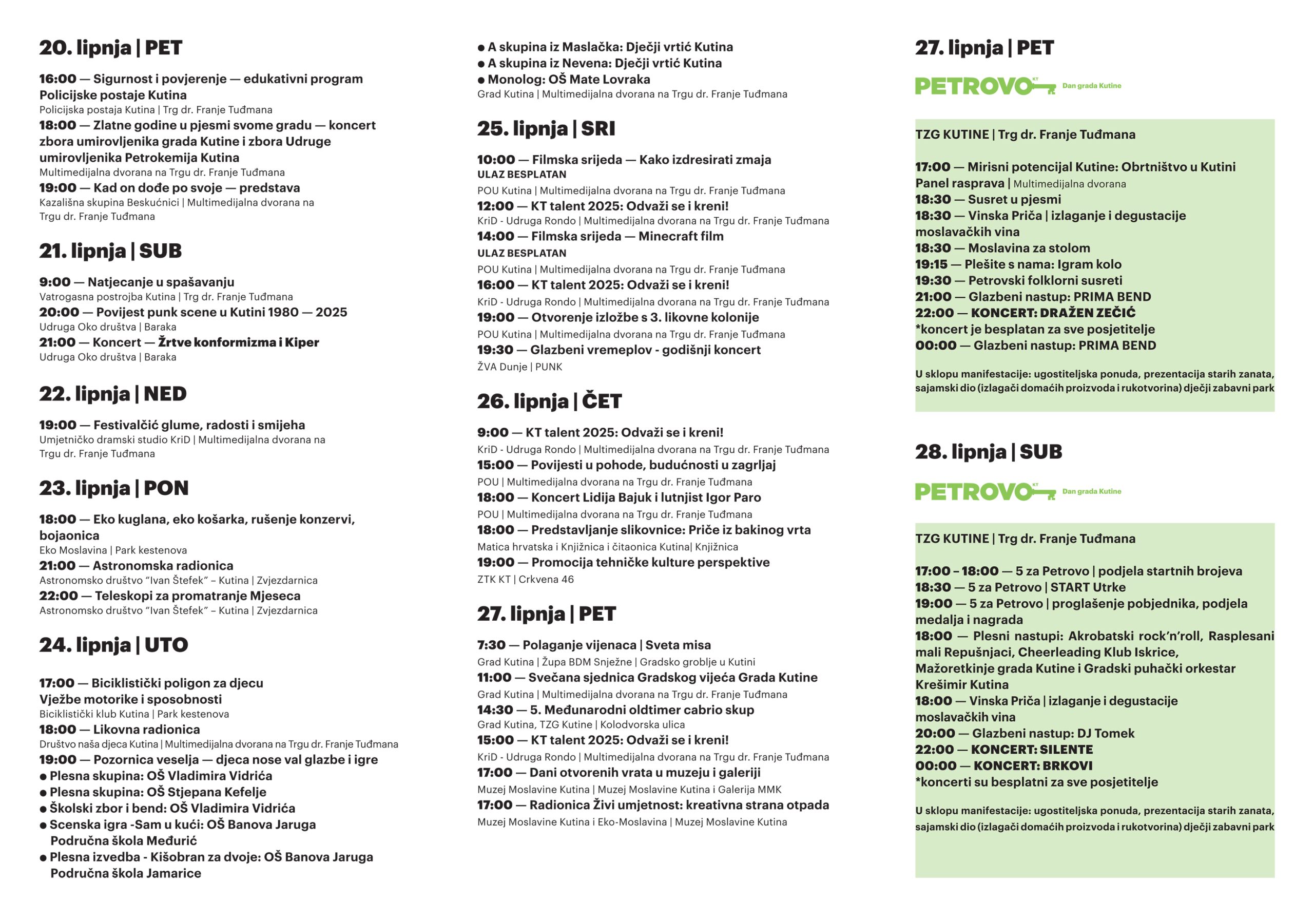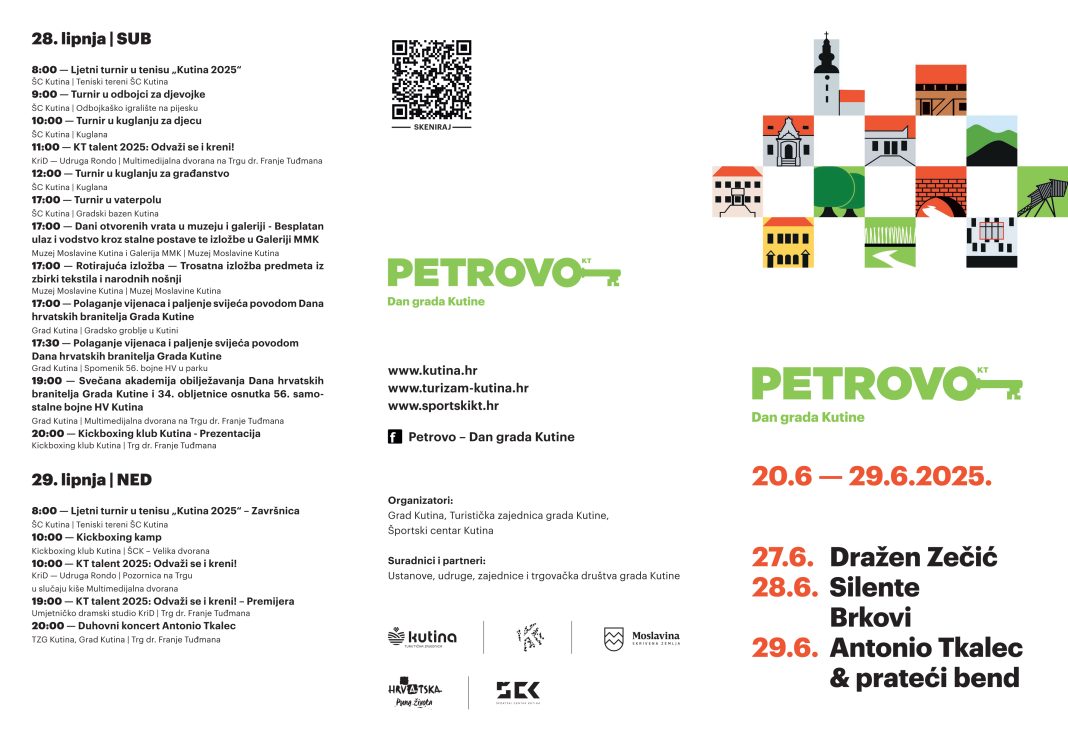 Obilježavanje Dana grada Kutine trajat će od 20. do 29. lipnja, a centralni dani Petrova – slavlja kutinskog su 27. i 28. lipnja 2025. godine.