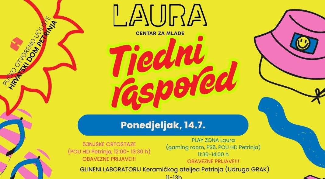 Centar za mlade Laura nastavlja djelovati kao dinamično i dostupno mjesto susreta, učenja i slobodnog izražavanja za sve mlade Petrinje. Medije ljubazno pozivamo da informaciju podijele s javnošću kako bi se što više mladih uključilo u besplatne i kvalitetne aktivnosti.