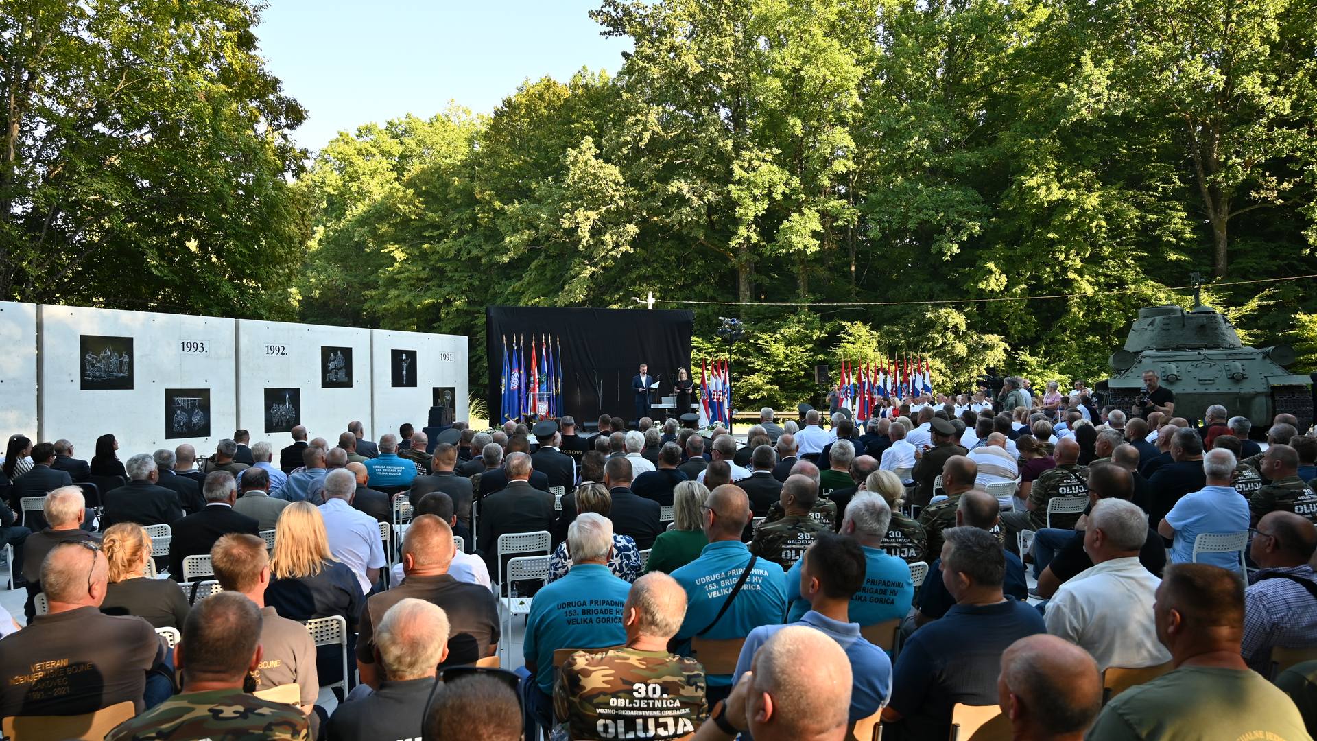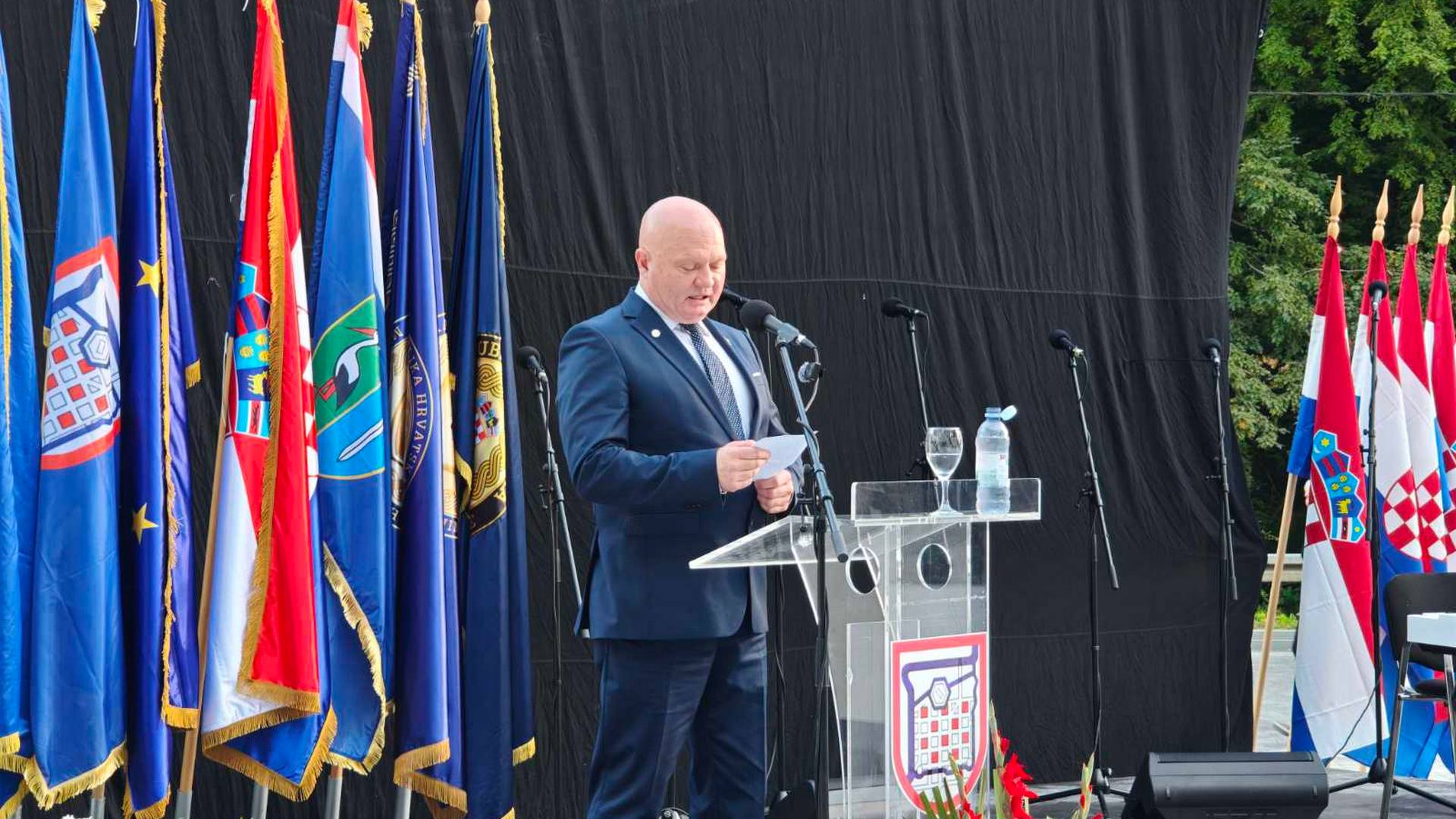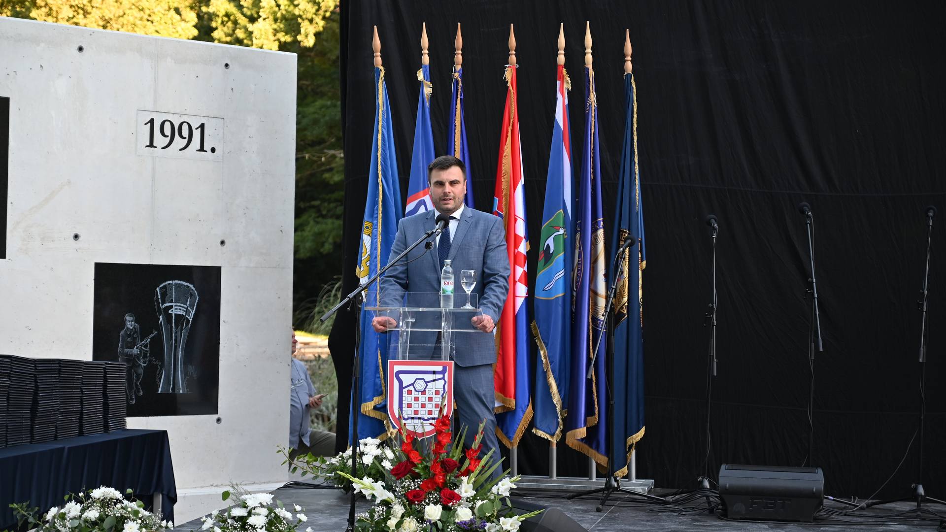 “VRO Oluja donijela je našem narodu konačnu pobjedu, ona je bila kruna svih naših bitaka. Operacija u kojoj je hrvatska hrabrost ispisala najsjajnije stranice naše povijesti. I zato danas ovdje u Glini svečano otkrivamo spomen-obilježje koje svjedoči toj pobjedi. Pet betonskih blokova koji čine Zid pobjede prikazuju priču o putu naše borbe i žrtve do konačne slobode. Na ovom Zidu ispisana je istina”, rekao je u svom obraćanju potpredsjednik Vlade RH i ministar hrvatskih branitelja Medved.