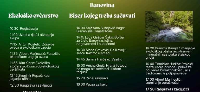 U popodnevnim satima u sklopu Sekcije „Banovina, biser kojeg treba sačuvati“ kratkim uvodnim izlaganjima će aktivisti i stručnjaci upoznati sudionike sa sadašnjim stanjem i opasnosti od značajnog zagađenja okoliša Banovine.