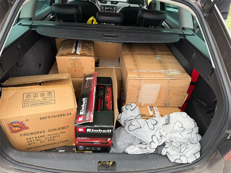 Pregledom vozila policijski službenici su pronašli 577 komada pirotehničkih sredstava F4 kategorije i 1000 komada pirotehničkih sredstava P1 kategorije čija je ukupna količina veća od dva kilograma, te je pronađeno i oduzeto 108 grama droge tipa konoplja i 14,28 grama droge hašiš.