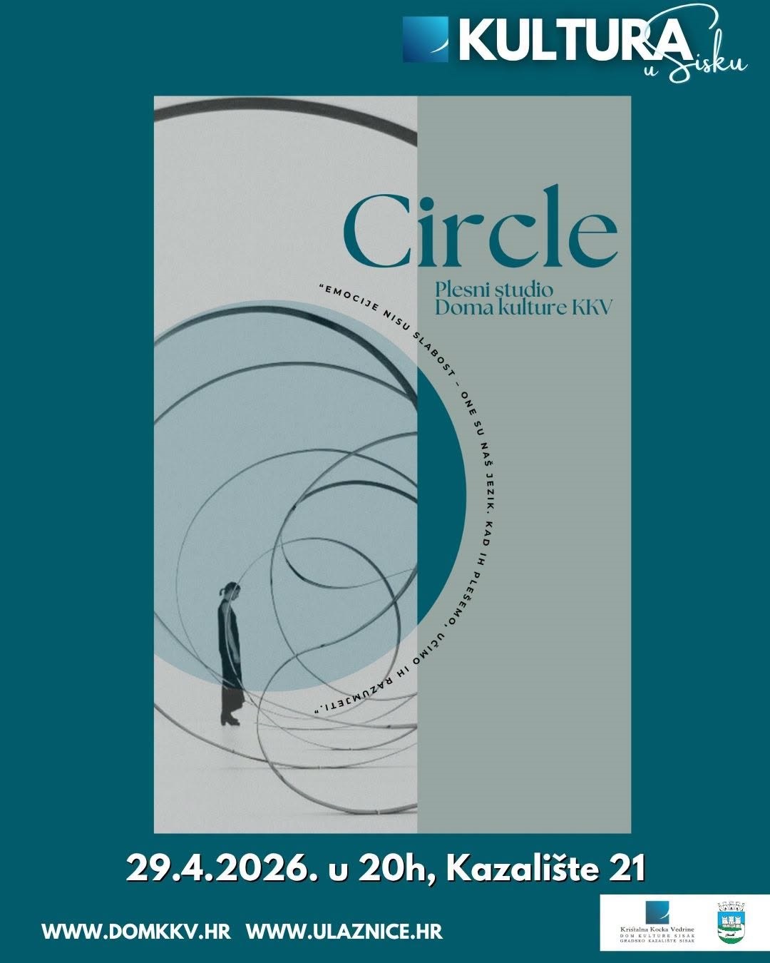 Plesni studio Doma kulture Kristalna kocka vedrine Svjetski dan plesa obilježit će izvedbom svoje suvremene plesne predstave za mlade i odrasle “Circle”, u srijedu, 29.4.2026. u 20 sati u Kazalištu 21. Koregorafiju potpisuje Ana Alapić a plešu: Josipa Brandić, Adriana Muža, Katja Rončević Sentočnik, Lucija Tuškanec, Kyra Sović, Paula Petrić, Ceylon Amarens Ibrahimović, Marija Matijević i Jelena Stojanović.